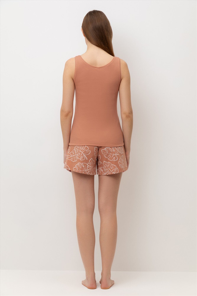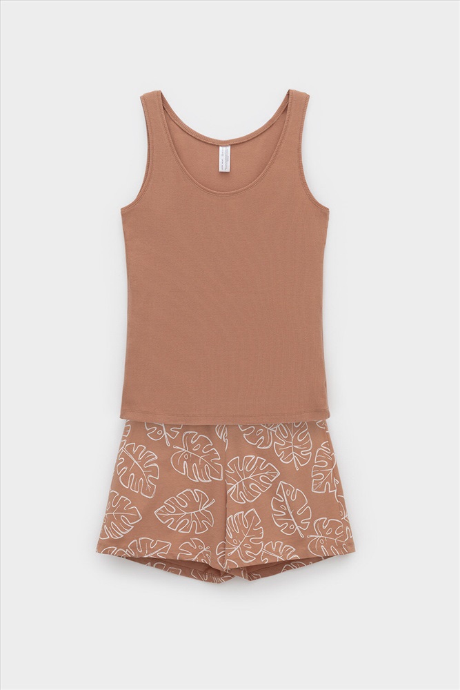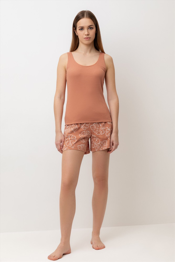 Комплект для комфортного сна из трикотажного полотна. Майка из эластичного трикотажа с добавлением лайкры в рубчик. Шорты с мягким поясом на резинке удобно садятся по фигуре. Гладкий материал приятен к телу, не теряет форму и позволяет коже дышать.