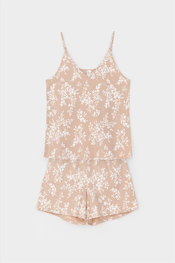 Комплект для комфортного сна из набивного трикотажа с нежным рисунком из 100% натурального хлопка. Майка на регулируемых бретелях удобно садится по фигуре. Шорты с мягким поясом на резинке. Гладкий материал приятен к телу, не теряет форму и позволяет коже дышать.