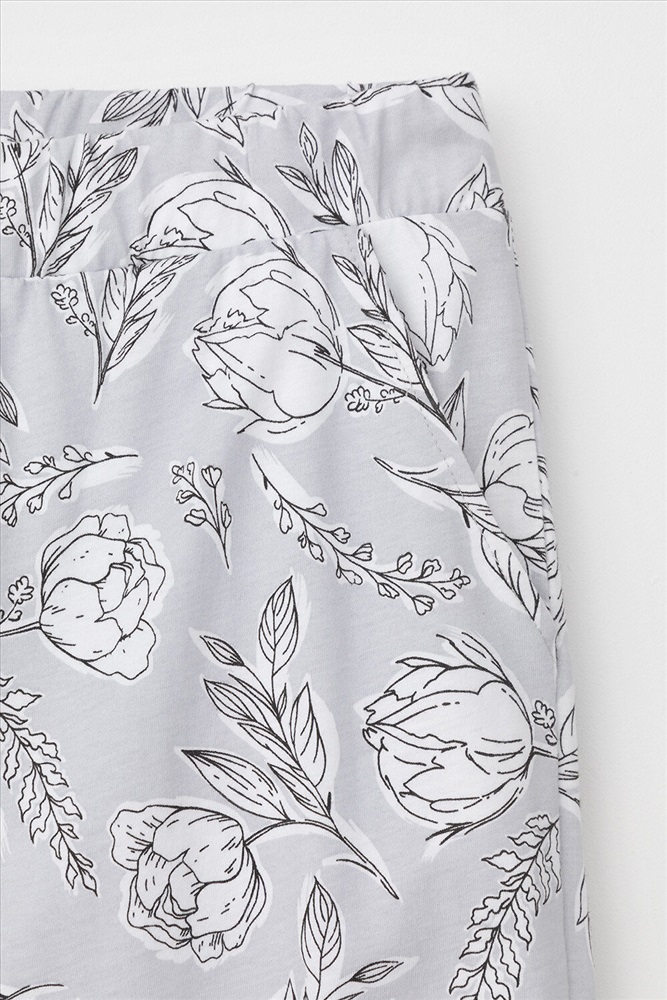 Легкий комплект для комфортного сна и отдыха. Свободная футболка с принтом и спущенной линией плеча комфортно садится по фигуре. Укороченные брюки с удобными боковыми карманами выполнены из набивного трикотажа. Гладкий материал приятен к телу и позволяет коже дышать.