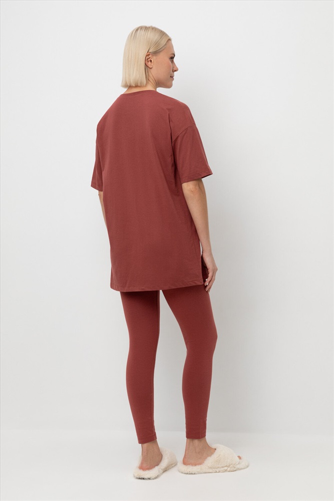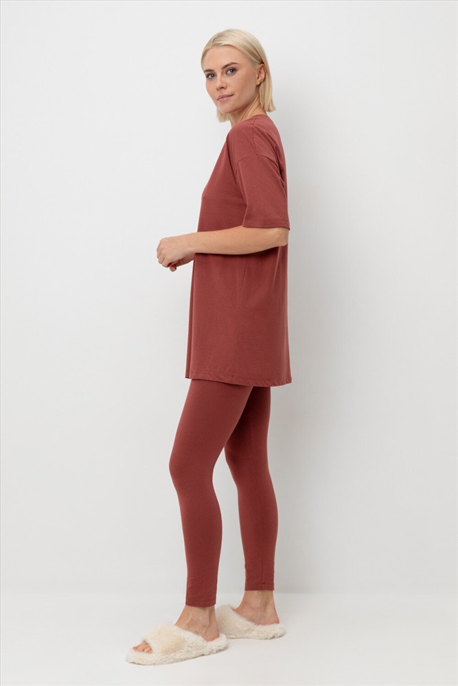 Комплект для сна и отдыха из натурального хлопка. Удлиненная футболка комфортно садится по фигуре. Бриджи из трикотажа с добавлением лайкры с мягким поясом на резинке.