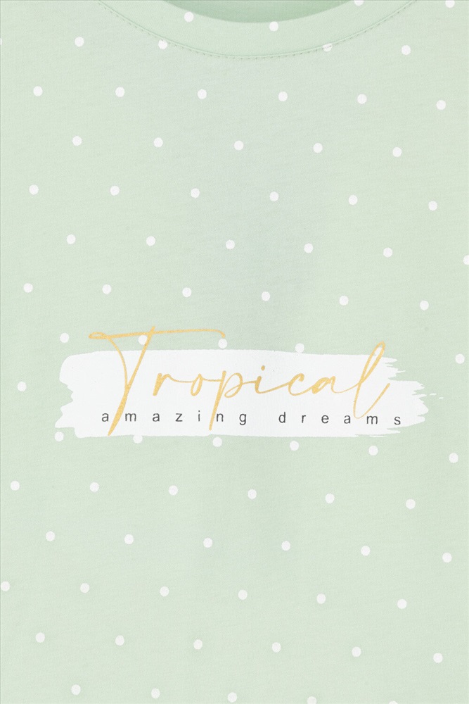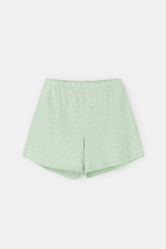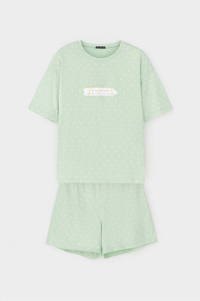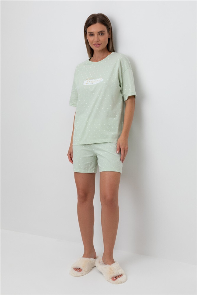 Комплект для комфортного сна и отдыха из трикотажа с нежным рисунком из 100% натурального хлопка. Футболка с короткими рукавами и спущенной линией плеча комфортно садится по фигуре. Шорты с мягким поясом на резинке. В поясе шорт атласная лента. Свободный силуэт не сковывает движения.