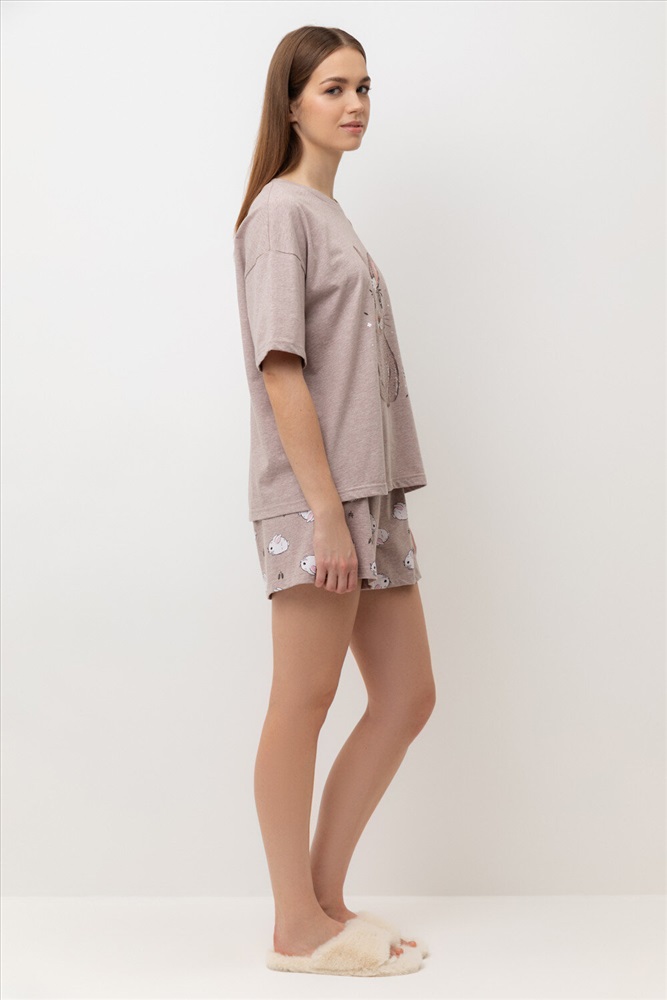 Комплект для комфортного сна и отдыха из трикотажа с нежным рисунком из 100% натурального хлопка. Футболка с короткими рукавами и спущенной линией плеча комфортно садится по фигуре. Шорты с мягким поясом на резинке. В поясе шорт атласная лента. Свободный силуэт не сковывает движения.