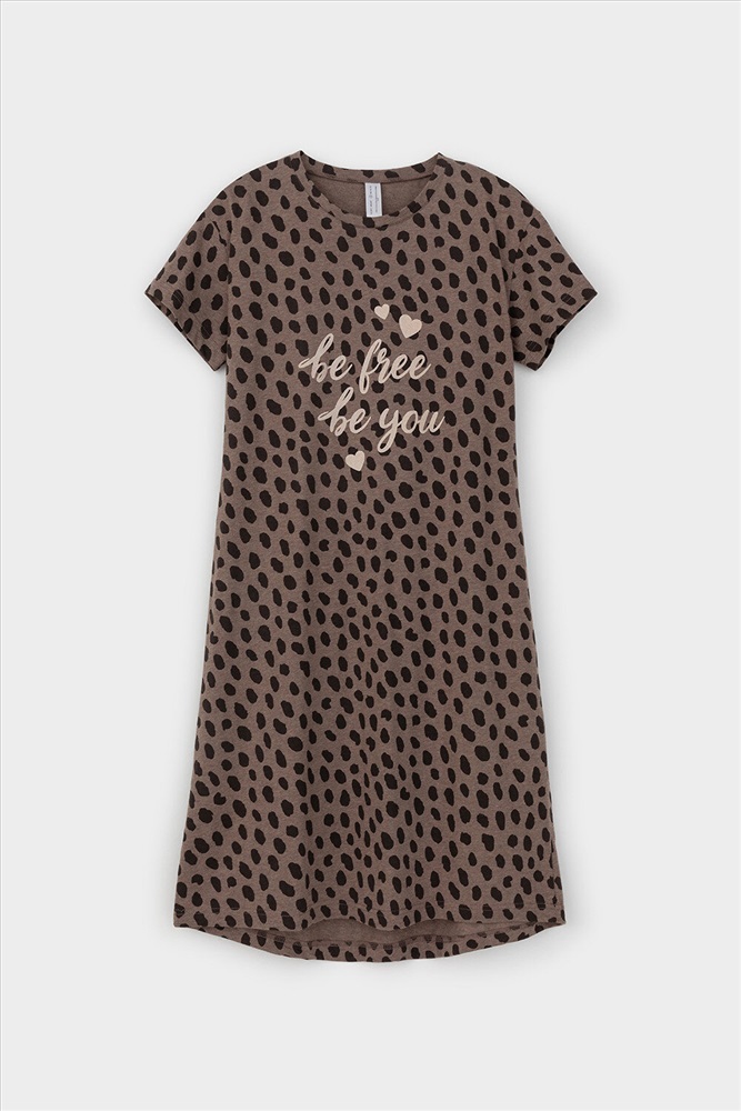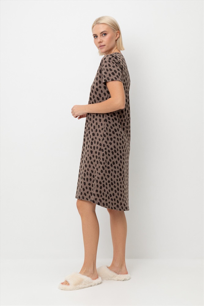Уютная удлиненная сорочка с короткими рукавами из 100% натурального хлопка. Выполнена из набивного трикотажа супрем с нежным рисунком.
