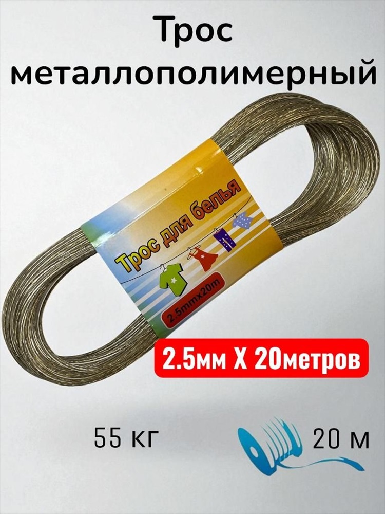 Трос металлополимерный, трос для белья 2.5mmx20m