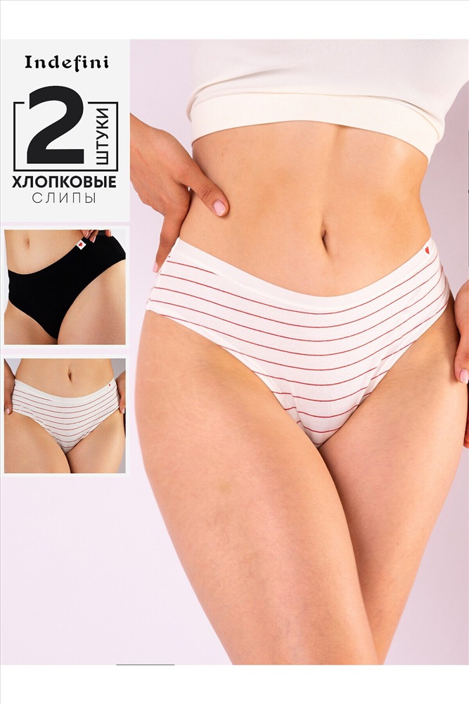 ID товара: 1191414 Состав: 95% Хлопок 5% Эластан Сезон: Демисезон Основная ткань: Хлопок Модель трусов: Танга Страна бренда: Россия Страна производства: Китай Набор трусов-танга от бренда Indefini включает две модели: одну с классическим черным дизайном, вторую — с белым фоном и красной полоской. Оба изделия выполнены из мягкого хлопка с добавлением эластана, что обеспечивает отличную посадку и комфорт в течение дня. Эластичная резинка не сдавливает и надежно фиксирует трусы на талии. Минималистичный декор в виде маленького сердечка добавляет оригинальности. Особенности: ✔ 95% хлопок, 5% эластан ✔ Мягкая эластичная резинка ✔ Яркий и лаконичный дизайн ✔ Универсальная посадка для ежедневного комфорта. Параметры модели на фото: 90-62-92. Рост модели на фото: 175 см Комментарии к товару