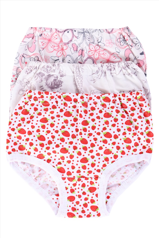 Классические трусики из хлопкового трикотажа для девочек. Верх с резинкой-вздежкой, низ обработан окантовкой. В упаковке 3 шт
