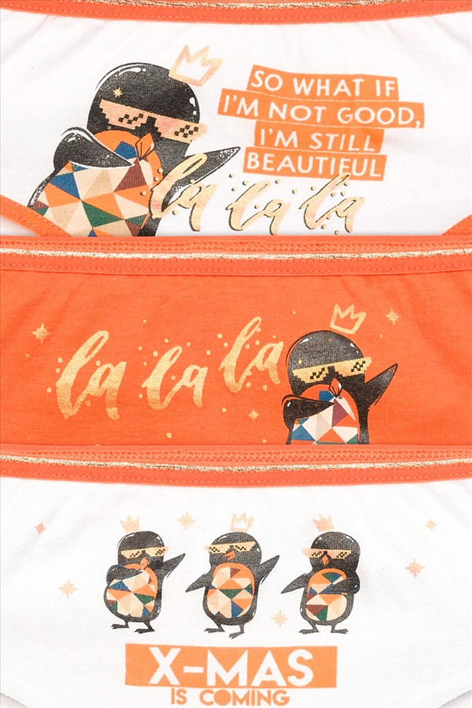 ID товара: 735706 Состав: верх- 100% Хлопок, низ- 100% Хлопок Сезон: Осень/Зима Рисунок: Надпись Декоративные элементы: Печатный принт Основная ткань: Хлопок Модель трусов: Слипы Страна бренда: Россия Страна производства: Китай Трусики слипы со средней посадкой для девочек. В комплекте 3 изделия. По талии эластик с люрексом. Прочный принт с разноцветным глиттером. Обработка эластиком по ноге. Комментарии к товару