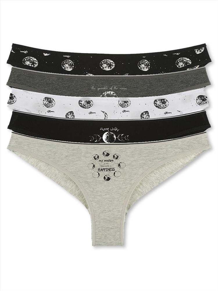 Стильные трусы бразилиана для женщин, изготовленные из тонкого эластичного трикотажа. Модель украшает классный принт или набивной рисунок с луной.