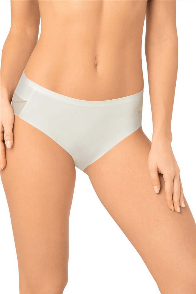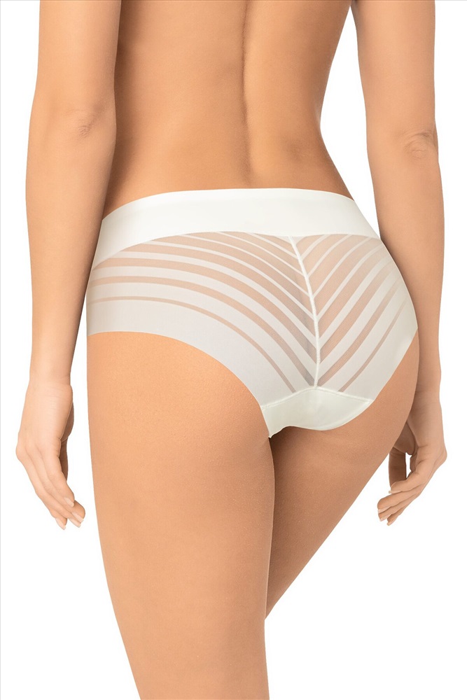 Трусы макси-слип с высокой линией талии. Передняя деталь выполнена из мягкой микрофибры, задняя деталь - из декоративного полотна с чередующимися полосками разной ширины. Спереди вырез ножки обработан с использованием технологии "лазерный край". Линия талии проклеена вподгибку. Хлопковая ластовица притачана к изделию потайным швом. Благодаря особенностям обработки материалов изделие абсолютно незаметно под одеждой. 1 штука в упаковке, упаковка - адресная картонная коробочка.