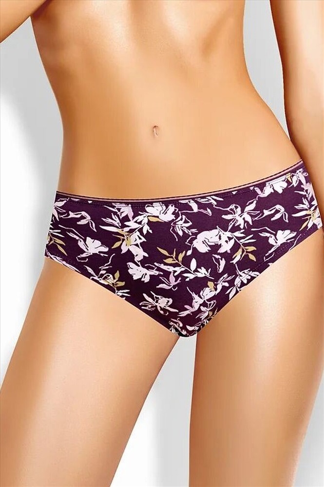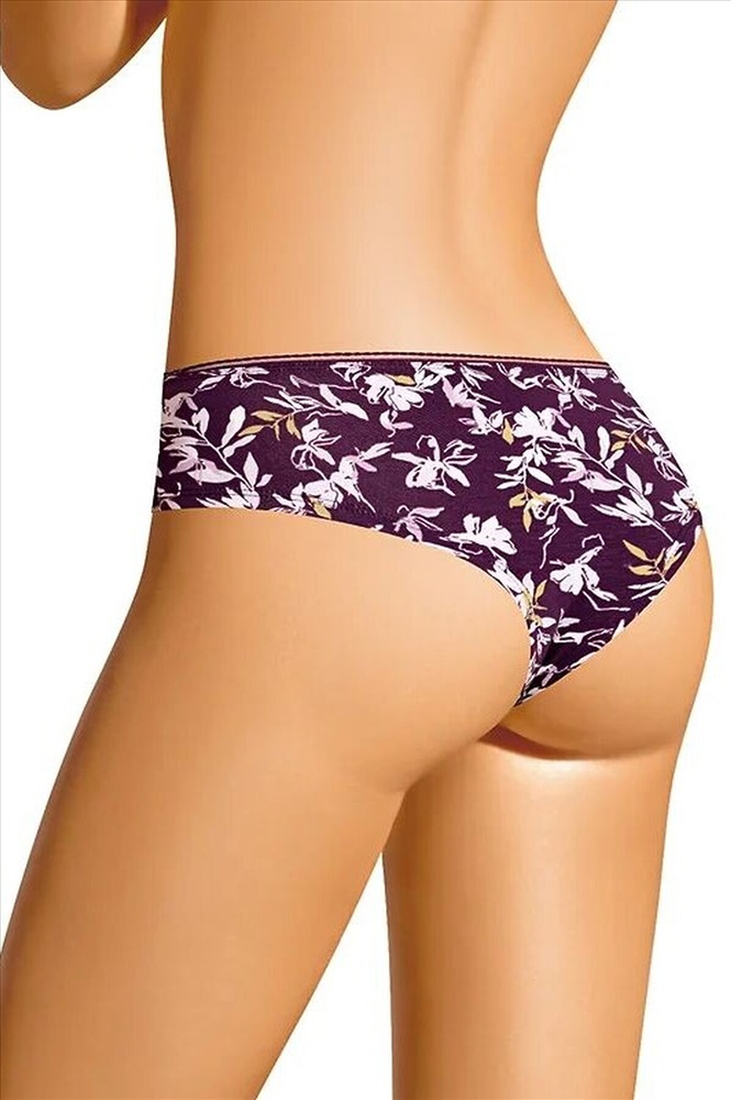 Трусы - бразилиана женские из эластичного хлопкового полотна. Обработка краев по талии ажурная резинка, по ноге - подгибка.