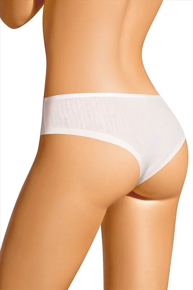 Трусы бразилиана женские из эластичного хлопкового полотна. Обработка краев по талии окантовочная резинка, по ноге - подгибка.