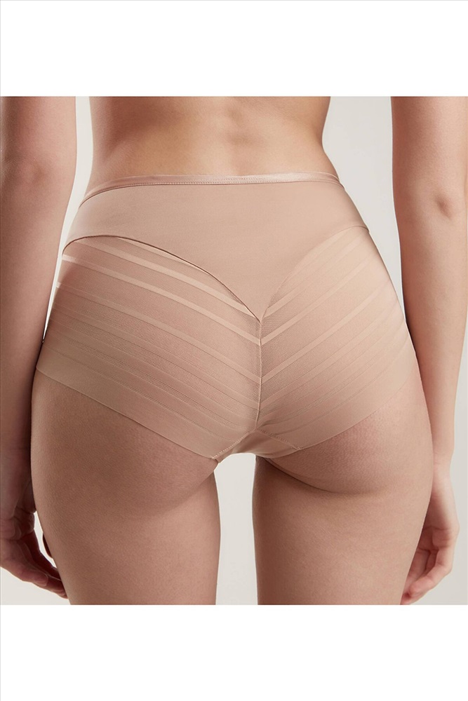 Трусы «слип» c высокой линией талии Sport Glam RP2097 созданы в направлении спорт-шик и объединяют спортивный стиль полотна в полоску с женственной мягкостью конструктивных линий. • слип • высокая линия талии • передняя деталь на подкладке • нижний край кружева без обработки • незаметны под одеждой • чувственное и очень комфортное белье.
