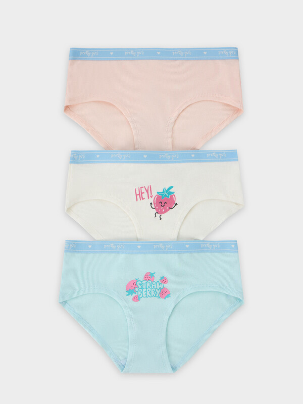 Мультипак (3 шт.) стильных трусиков-шортов из трикотажной рибаны – в мелкий рубчик. Нижние срезы подогнуты, на верхнем срезе – жаккардовая тесьма. Актуальный выбор!