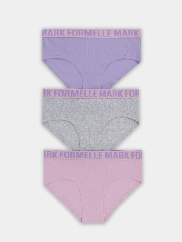 Мультипак (3 шт.) стильных трусиков-шортов из трикотажной рибаны – в мелкий рубчик. Нижние срезы подогнуты, на верхнем срезе – жаккардовая тесьма. Актуальный выбор!