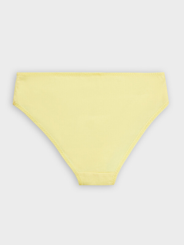 Трусы для девочек. Ластовица из трикотажного кулирного полотна. Задняя деталь цельнокроенная. Верхний и нижние срезы трусов окантованы лаваблем.