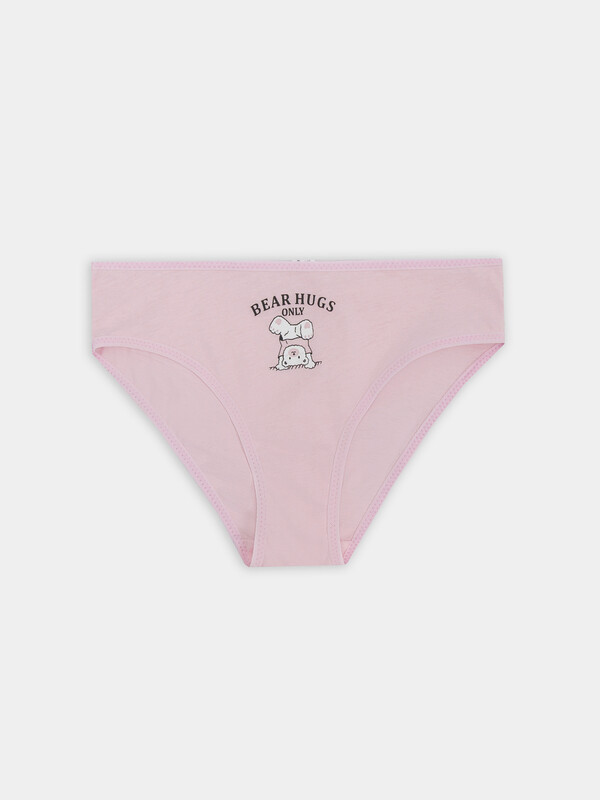 Трусы для девочек. Ластовица из трикотажного кулирного полотна. Задняя деталь цельнокроенная. Верхний и нижние срезы трусов окантованы лаваблем.