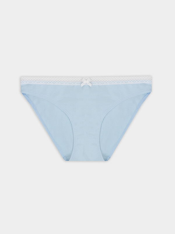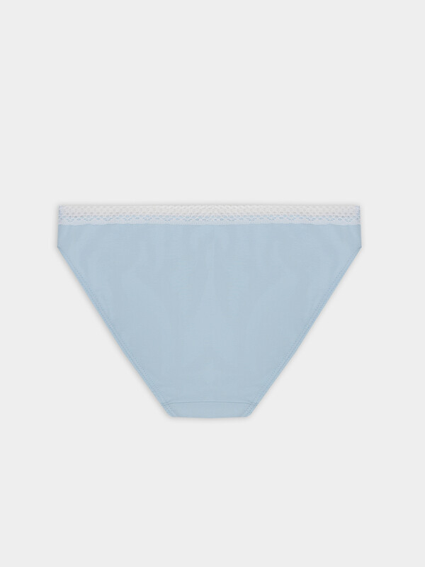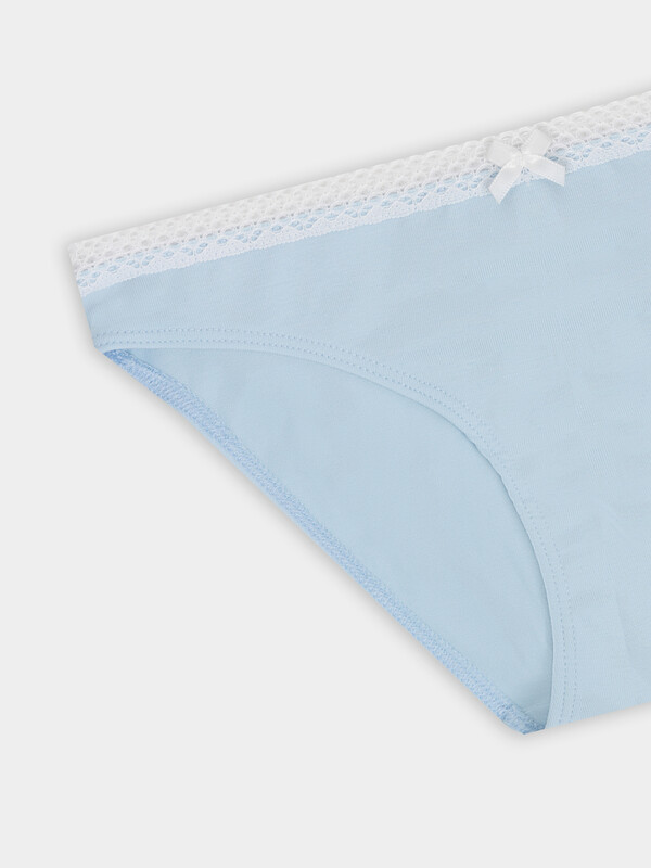 Трусы с боковыми швами. Детали переда и сидения цельнокроеные. Ластовица из основного полотна, отлетная по верхнему срезу. Нижние срезы трусов обработаны с швом в подгибку с жилкой тканой 6мм (Devsel 13460W). К верхнему срезу трусов притачано кружево 15мм, Devsel L20166-1.5