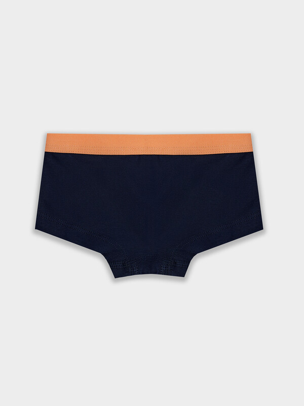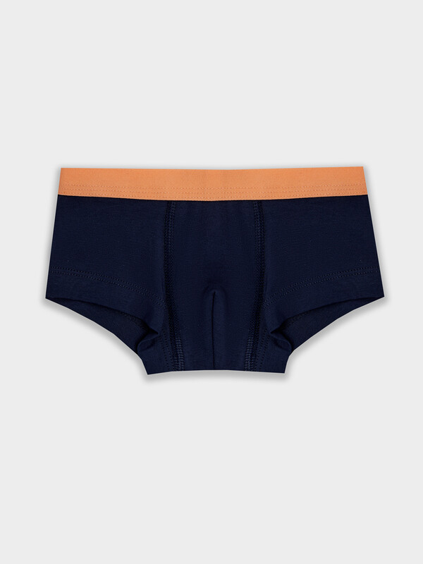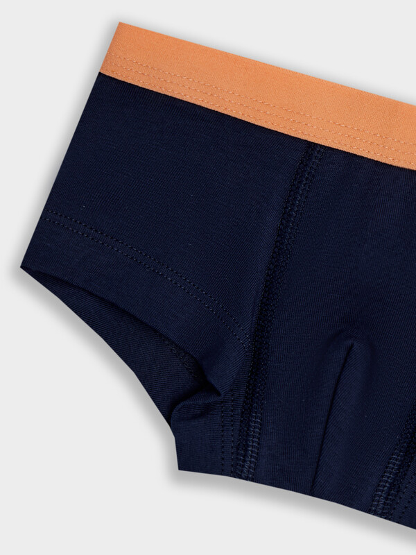 Трусы для мальчиков в темно-синем цвете с контрастной оранжевой окантовкой – идеальный выбор для активного ребенка.