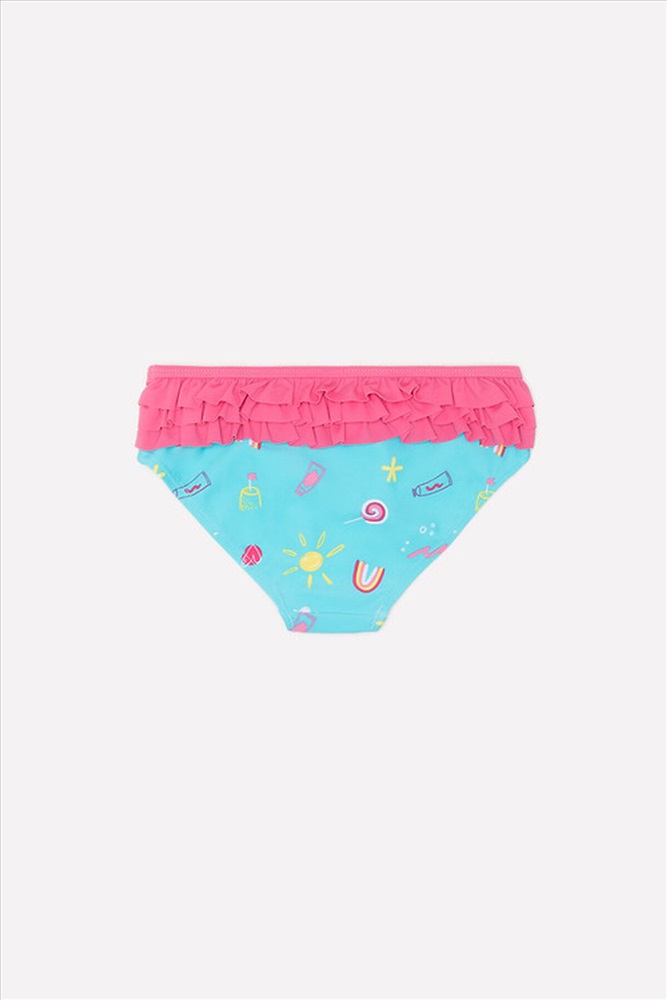 ID товара: 182120 Состав: 80% Нейлон, 20% Спандекс Сезон: Весна/Лето Рисунок: Фантазийный Декоративные элементы: Рюши Основная ткань: Нейлон Стиль: Повседневный Модель трусов: Слипы Страна бренда: Россия Страна производства: Россия Купальные трусы для девочки с набивным рисунком. В проймах и поясе эластичная тесьма. На задней половинке три ряда рюшей. По внутренней стороне переда подкладка. . Комментарии к товару