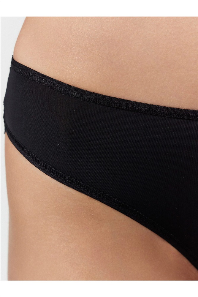 Комфортные слип-бикини из невесомой микрофибры и ажурного эластичного кружева на задней детали. Посадка по талии слегка занижена. На верхнем срезе и по ножкам – эластичная тесьма. Стильные трусики!