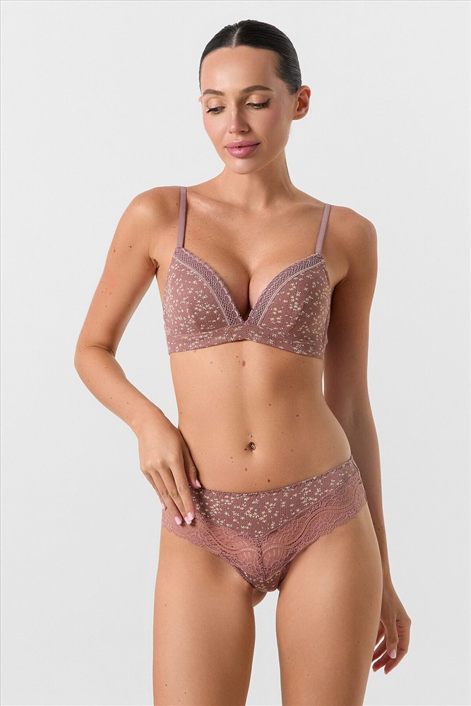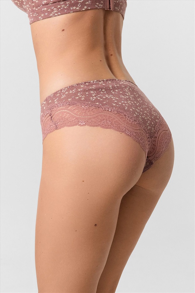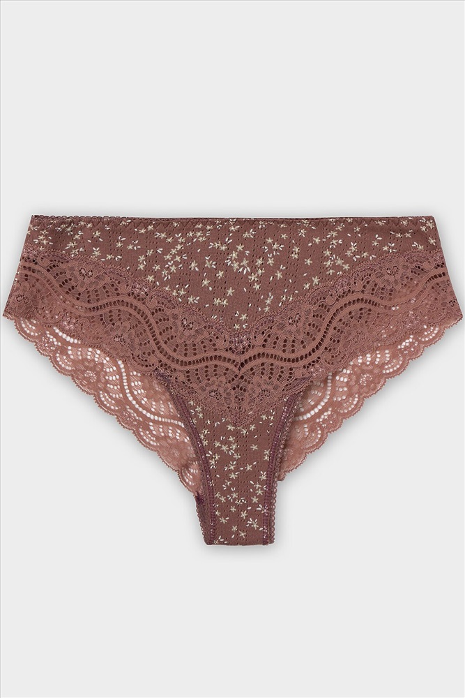 Эластичная тесьма по линии талии, аккуратно настроченная зигзагообразной строчкой, обеспечивает идеальную посадку без дискомфорта. Кружево по линии ножек добавляет образу изящную нотку, а швы на передней и задней частях подчеркивают аккуратный крой.