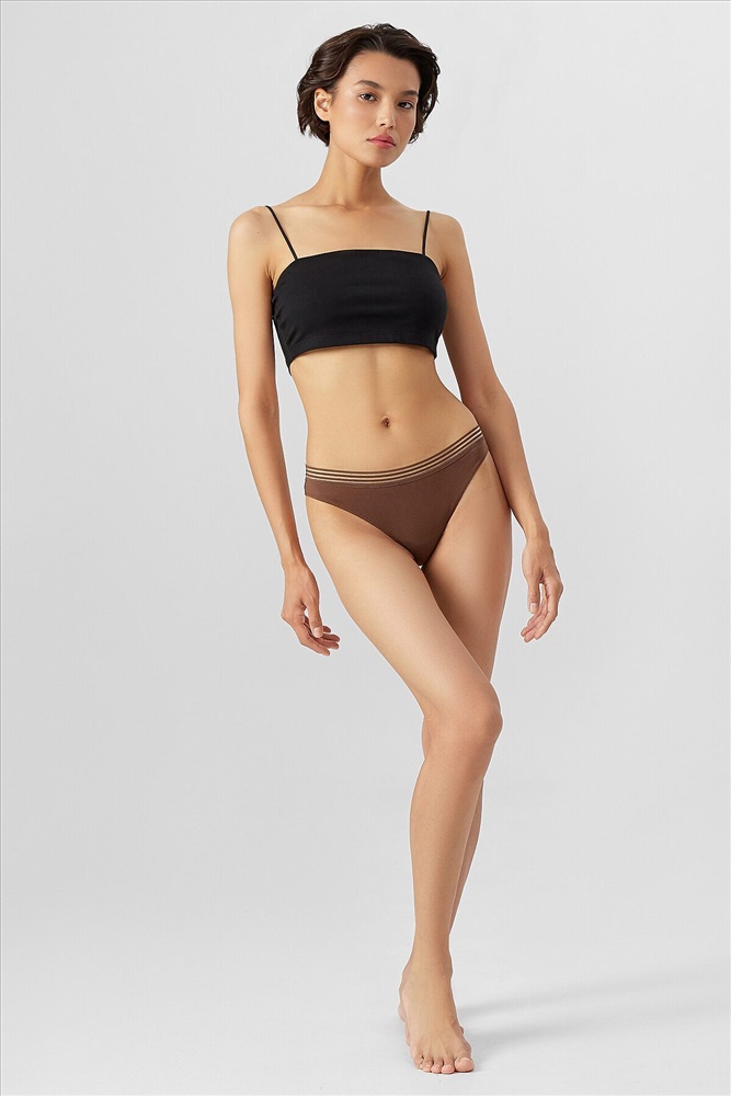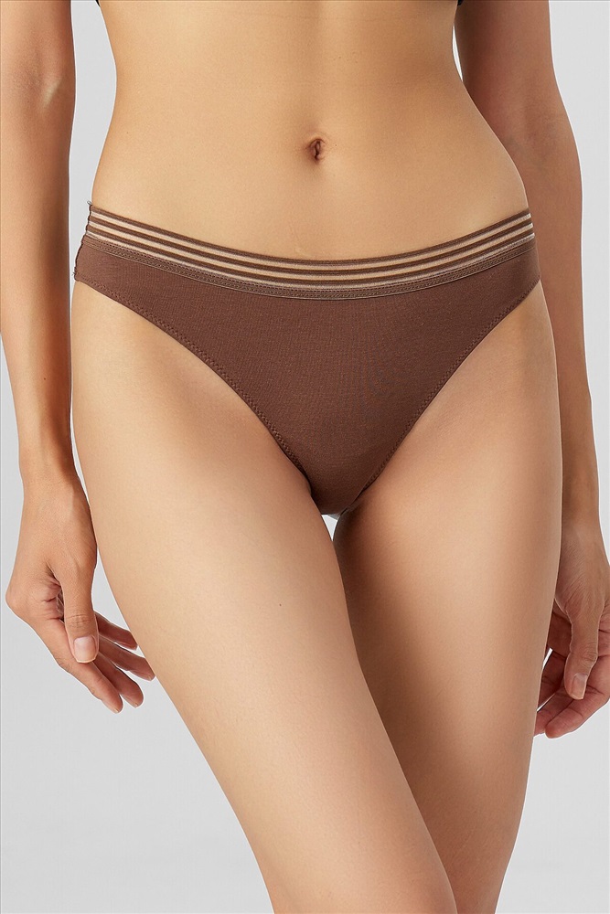 Если вы рассматриваете возможность купить женские стринги, эта модель станет отличным выбором. Их можно носить под облегающей одеждой - благодаря средней посадке они остаются незаметными, обеспечивая при этом полный комфорт, а нежный кофейный оттенок легко сочетается с разными элементами гардероба.