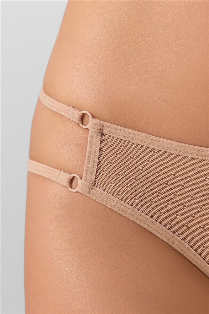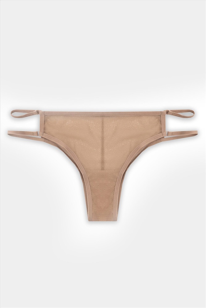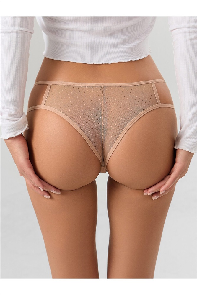 Интригующие женские бразилиана с классической линей талии. Трусики выполнены из ультралегкого полупрозрачного сетчатого полотна. Срезы бразилиана обработаны тесьмой. Изюминкой трусиков являются вырезы в боковых частях. Очаровательно!
