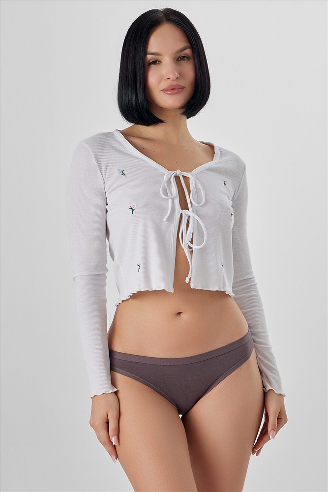 ID товара: 1224679 Состав: 92% Хлопок; 8% Эластан Сезон: Демисезон Посадка: Средняя Основная ткань: Хлопок Модель трусов: Слип-бикини Уход: Деликатная стирка при 30 градусах Фактура материала: Кулирное полотно Страна бренда: Беларусь Страна производства: Беларусь Трусы женские со средней посадкой силуэта «слип» из трикотажного кулирного полотна. Узкий бочок. Передняя и задняя детали цельные. Подкладка ластовицы из кулирного полотна отлетная по переднему краю. По верхнему срезу настрочена жаккардовая эл тесьма 15 мм (тесьма жаккард MF D-4, код JT22-15). Нижние срезы окантованы узкой бейкой (20 мм) из основного полотна в 2 сложения с узким верхним застилом (нить текстура №90). Комментарии к товару