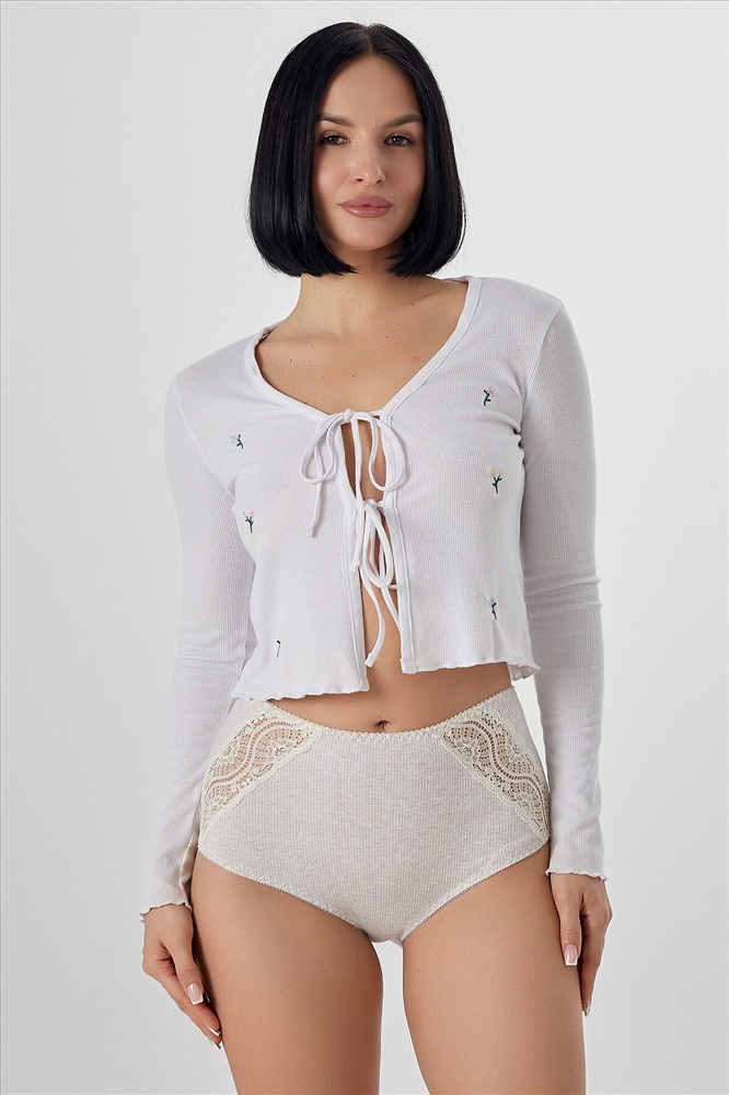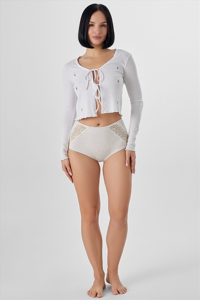 Женские трусы макси — воплощение элегантности и комфорта! Выполненные из высококачественного хлопка, они дарят мягкость, гипоаллергенность и полный комфорт при носке. Особенностью модели является изысканный декор: кружево, которое плавно переходит с передней детали на заднюю, создавая утонченный и гармоничный образ. Отсутствие боковых швов обеспечивает абсолютное удобство, а задняя деталь из рибаны гарантирует долговечность и комфортное прилегание. Высокая посадка, широкие боковые части и полностью закрытые ягодицы идеально адаптируются к фигуре, подчеркивая её формы и создавая уверенность в любой ситуации. Полупрозрачные кружевные вставки добавляют изделию женственности и изящества. Эти трусики прекрасно подходят дамам с пышными формами и становятся идеальным решением для повседневного гардероба. Эстетика и удобство в одном изделии!