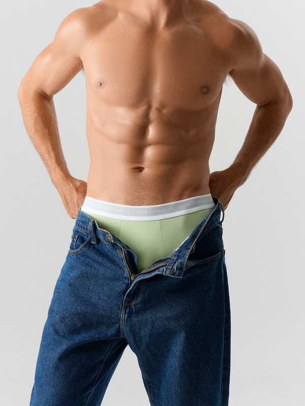 Прилегающие. Планка со средним швом. С ластовицей. Швы планки и шаговый шов выполнены строчкой "флэт-лок".  Верхний край трусов застрочен с эластичной тесьмой шириной 40 мм на плоскошовной машине. Нижние срезы обработаны швом вподгибку на плоскошовной машине.