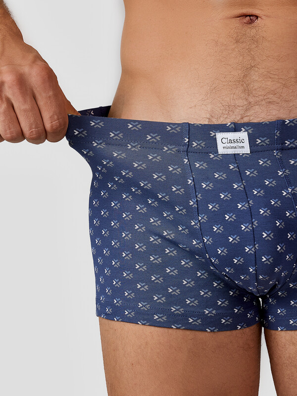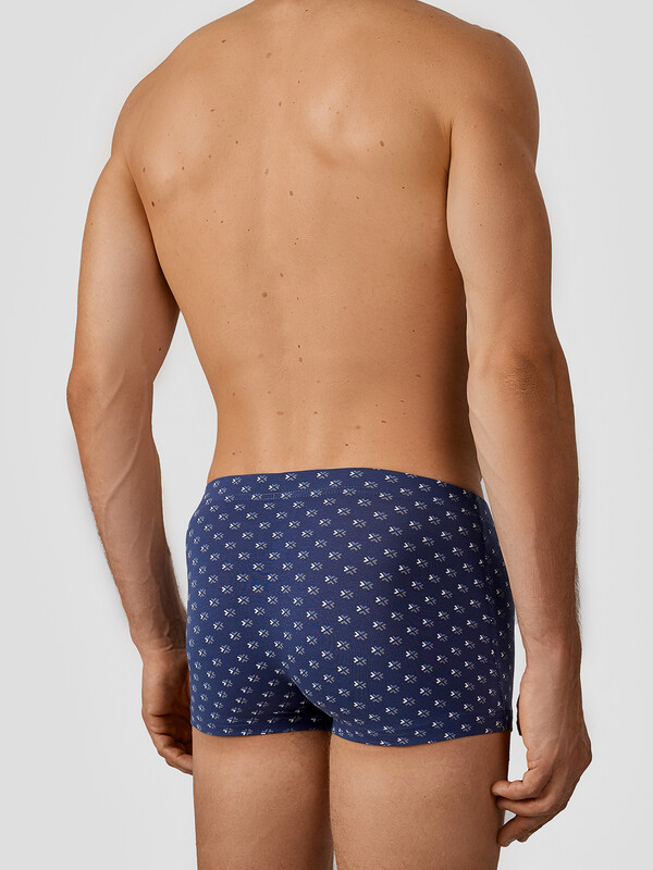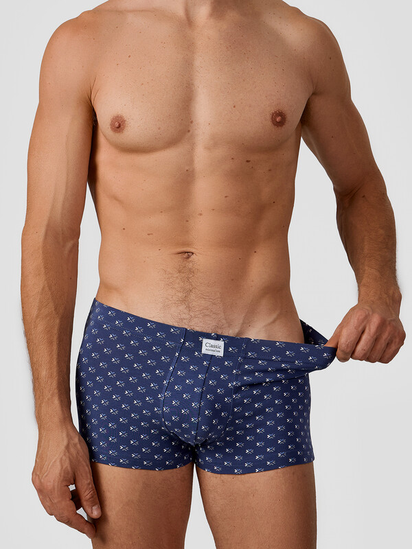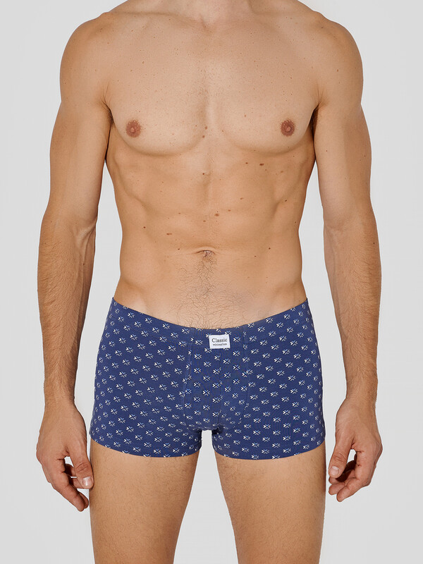 Прилегающие, с боковыми швами. Боковые и шаговый шов выполнены строчкой флэт-лок. Планка с средним швом. Боковые швы планки отстрочены на плоскошовной машине. Спинка цельнокроёная. Верхний край трусов застрочен с эластичной тесьмой шириной 30 мм на плоскошовной машине. Нижние срезы обработаны швом вподгибку на плоскошовной машине.