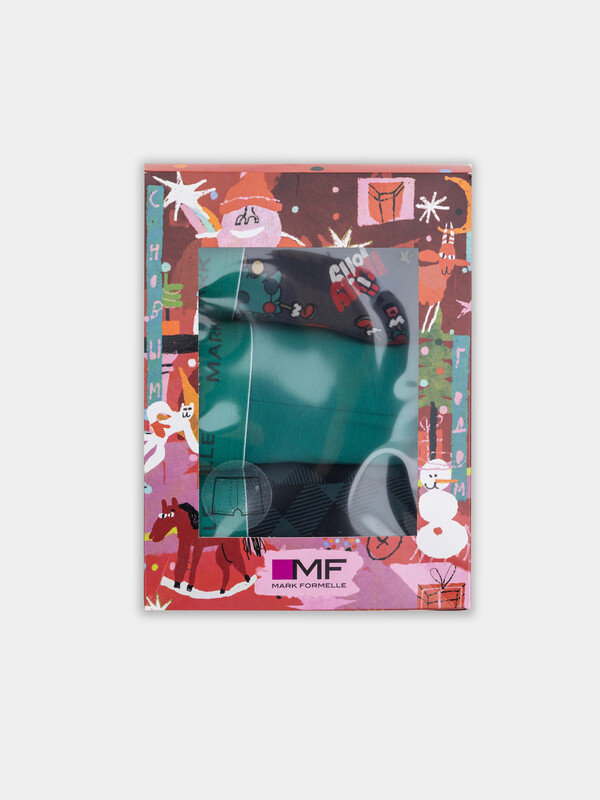 Цвет: елки на черном +зеленый +ч.клетка на зеленом