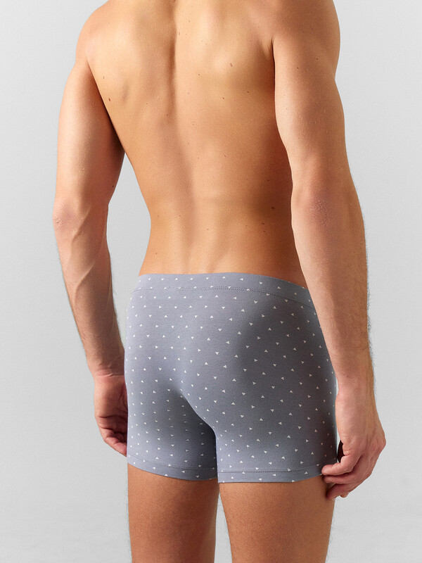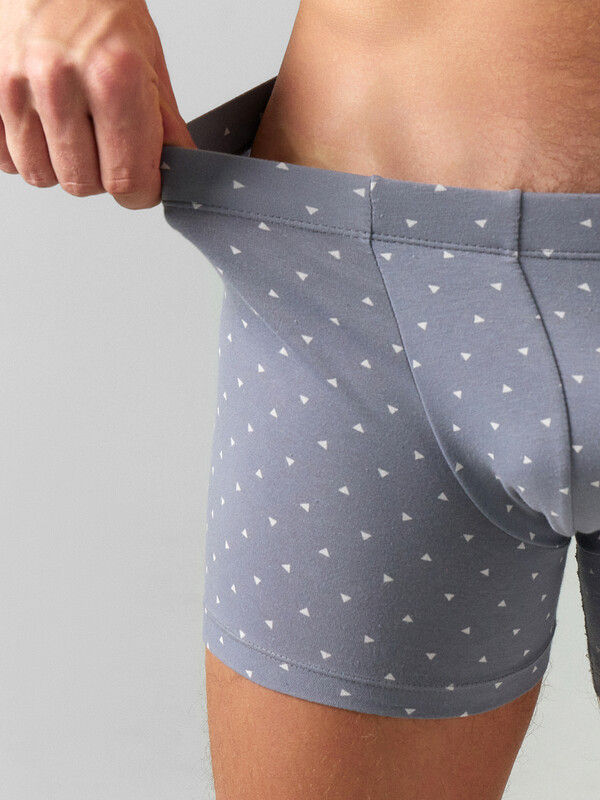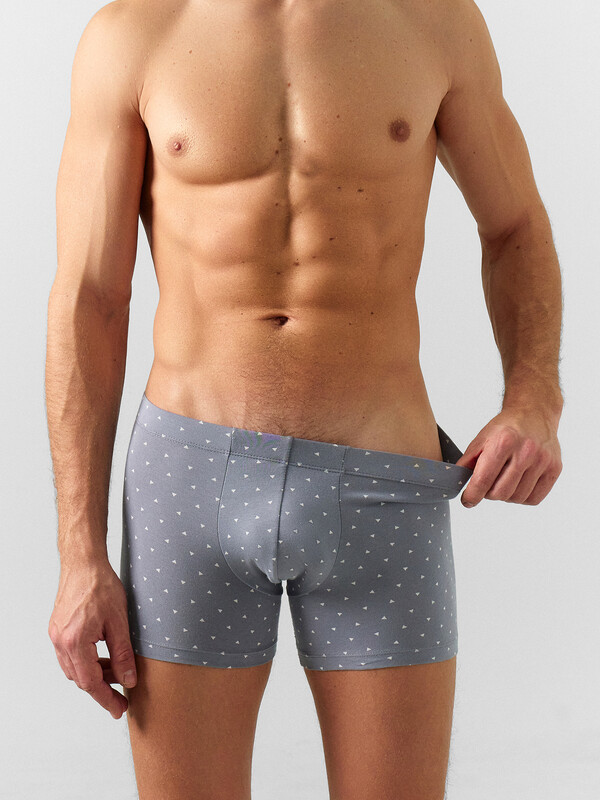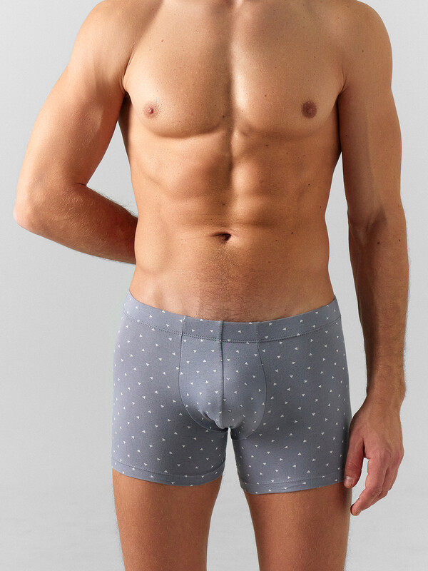 Трусы мужские из трикотажного полотна кулирки. Трусы облегающего силуэта, без боковых швов. Планка со средним швом. Шаговой шов выполнен строчкой «флэт-лок». Верхний край застрочен с эластичной тесьмой на плоскошовной машине.