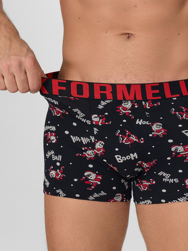 Прилегающие, без боковых швов. Планка с вытачкой. Задний шов ластовицы обработан строчкой «флэт-лок». По верхнему срезу настрочена фирменная жаккардовая эластичная тесьма (30 мм или 35 мм, по заданию) на 3-хигольной плоскошовной машине. Боковой срез тесьмы стачен строчкой «флэт-лок». Нижние срезы застрочены швом вподгику на плоскошовной машине.