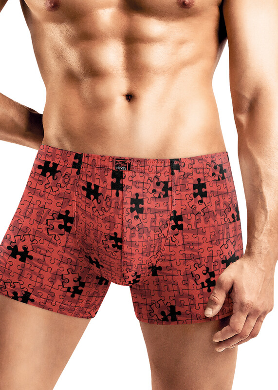 Шорты удлиненные комфортной посадки выполнены из оригинального полотна в имиджевую набивку ""пазлы"". Трусы дополнены фирменным жаккардовым логотипом.