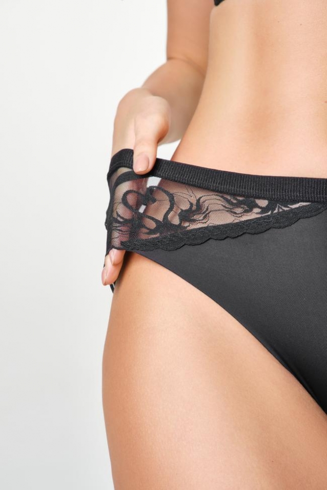 Трусы OIRO 901 бесшовные слипы с кружевом 44-56 1 шт (Черный)