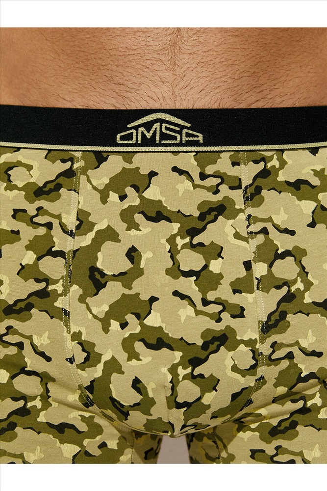 Мужские трусы - боксеры со средней линией талии, открытой брендированной резинкой и актуальным принтом. Изготовлены из высококачественного мягкого хлопка, который отлично пропускает воздух, приятно ощущается на теле и подходит даже для чувствительной кожи. Эластан в составе обеспечивает идеальное облегание. Комфортные боксеры с принтом в стиле милитари не только подчёркивают характер, но и добавляют акцент в повседневный образ. Идеальны в роли стильного подарка — практичного, модного и с настроением.