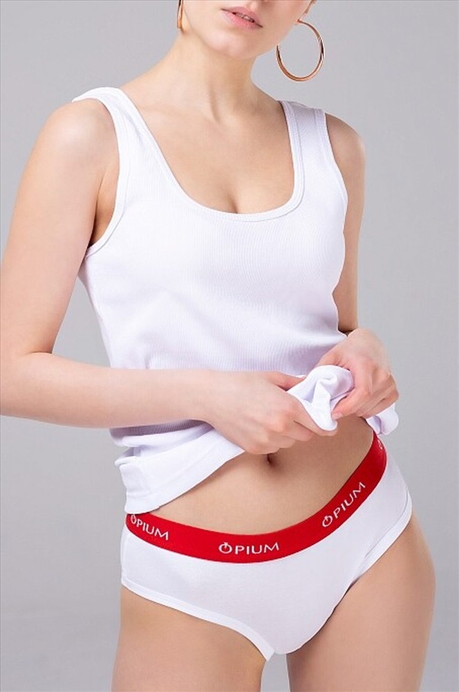 Трусы-слип с заниженной талией из хлопка с эластаном, с комфортной фирменной резинкой нарядного контрастного красного цвета с логотипом OPIUM, на каждый день и занятий спортом.