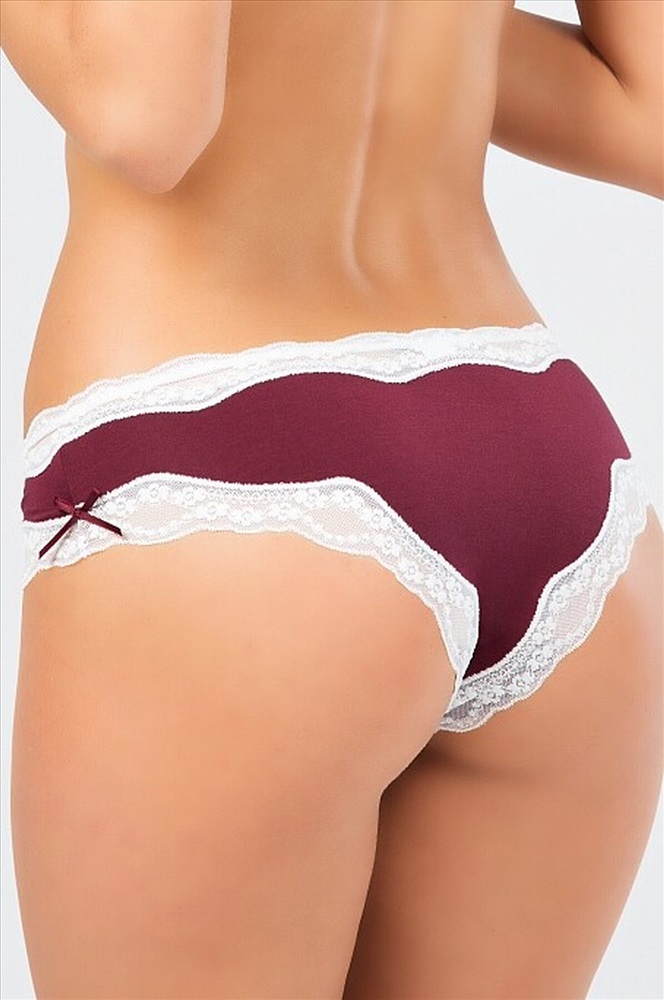 Трусики-слип из мягкого и приятного к телу натурального полотна с контрастной кружевной отделкой, спереди украшены буковкой логотипа серебряного цвета.