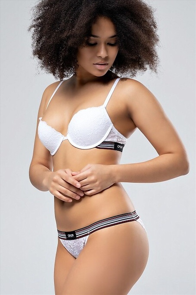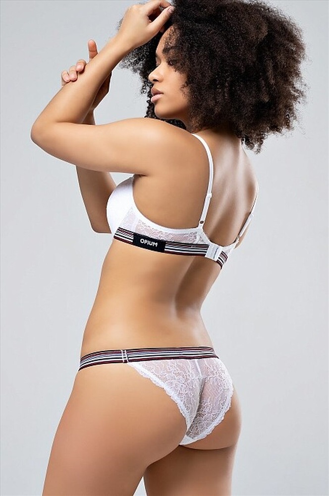 Базовая флагманская модель трусиков Opium. Силуэт «Танга», изысканное кружево, спортивная полосатая резинка с логотипом – эта модель максимально удобна и украсит любую фигуру! Выполнена в классических цветах: чёрном и белом. . Красивый и комфортный комплект с бюстом B-17 станет излюбленным в Вашей коллекции нижнего белья.