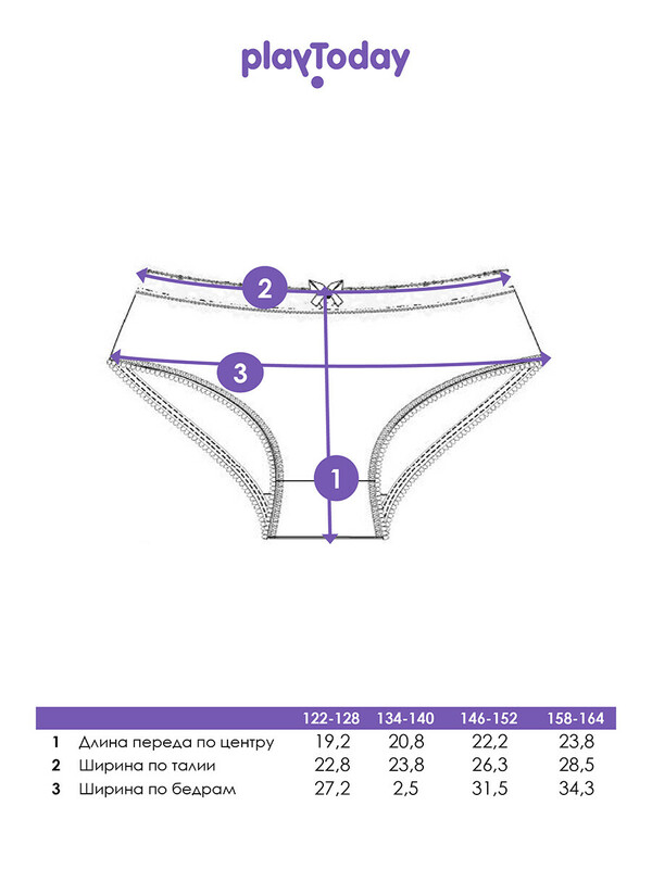 Преимущества модели: + мягкий хлопковый трикотаж с эластаном + анатомический крой + кружевная отделка + мягкая эластичная резинка + гипоаллергенный состав + универсальные расцветки: черный, белый + 2 пары в комплекте + легкий уход Этот базовый комплект хлопковых подростковых трусов с кружевом для девочек создан с учётом анатомии подростка: модель хорошо садится по фигуре, мягко прилегает и не сковывает движений. Хлопок обеспечивает комфорт в течение всего дня — как в школе, так и на прогулке. Эластан в составе помогает белью не терять форму после многочисленных стирок. Кружево расположено по линии пояса — элегантно, но сдержанно: не мешает и не колется. Такие универсальные трикотажные трусы для подростков с кружевной отделкой помогут девочке чувствовать себя не только удобно, но и уверенно. Совет по уходу: машинная стирка при температуре до 30°C. Классические детские трусы для школьницы быстро сохнут, не растягиваются и остаются мягкими даже после многократного использования. Модель представлена на рост 134–164 см — идеально подходит для девочек от 9 до 15 лет. Модный набор трусов с кружевами для девочки от PlayToday — это нежность, комфорт и уверенность каждый день. Практичное и красивое решение для школьного и повседневного гардероба. Комментарии к товару