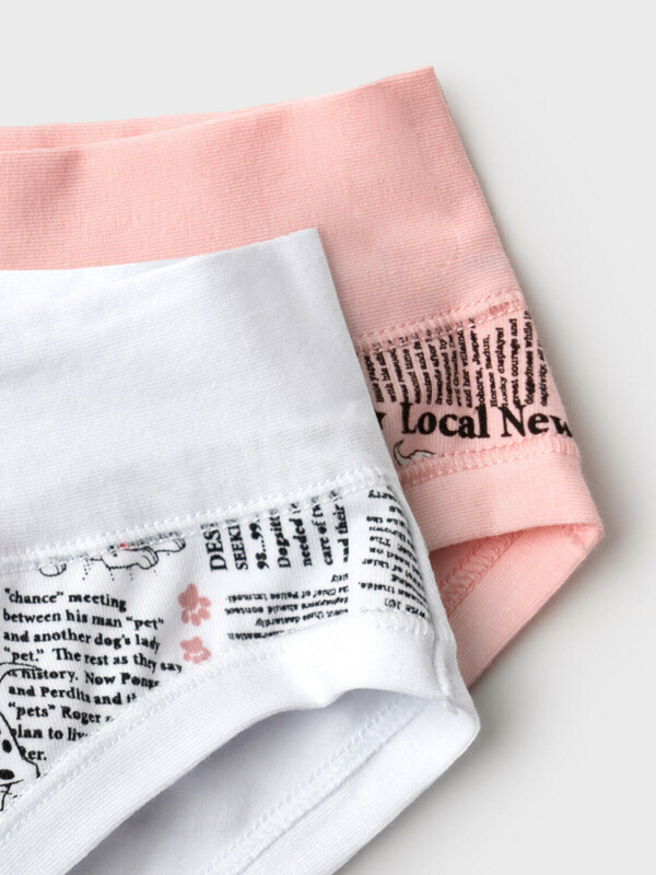 Набор из двух детских трусов-брифов для девочки. Изделия выполнены из мягкого, хлопкового эластичного трикотажа, с широкой резинкой по поясу и окантовкой по вырезам для ног. Принт с любимыми героями мультфильма "101 далматинец". Внутри предусмотрена ластовица.