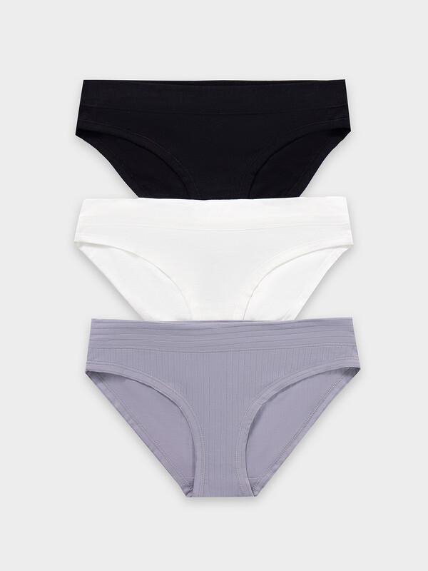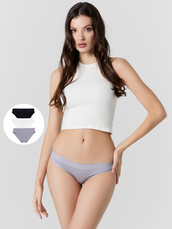Базовый набор женских трусиков слипов (3 шт.) разных цветов из высококачественного хлопка. Невероятно удобные, благодаря своей невысокой посадке, они пользуются заслуженной любовью покупательниц. Изготовлены из натурального материала — дышащего, мягкого, гипоаллергенного. Помимо длительного и полного ощущения комфорта трусики отличаются отличным качеством. Продуманная анатомическая конструкция, плоские швы и деликатные резиночки делают эту модель подходящей для занятий спортом. Пригодятся слипы и будущим мамам: низкая талия трусиков удобно помещается под растущим животиком и абсолютно не давит. Рекомендуем!