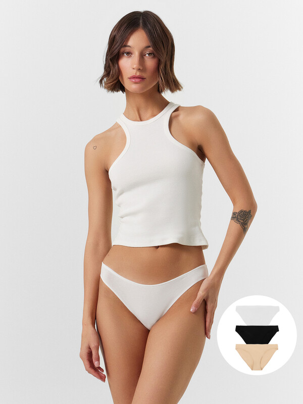 Набор женских трусиков (3 шт.) в различных цветах. Трусы женские слипы хлопок или, как их еще называют, трусы слип-бикини - популярная модель женского белья. Невероятно удобные, благодаря своей заниженной посадке, они пользуются заслуженной любовью покупательниц. Трусы изготовлены из высококачественного натурального хлопка, дышащего, мягкого, гипоаллергенного - идеального для повседневной носки. Помимо длительного и полного ощущения комфорта, материал отличается долговечностью и сохраняет вид даже после многочисленных стирок. Цвет трусиков останется ярким, рисунок не поблекнет и долго будет радовать вас. Продуманная анатомичная конструкция, плоские швы и деликатные резиночки делают эту модель подходящей для занятий спортом, можно использовать её как спортивное бельё, а также как ночные трусики для сна. Пригодятся трусы-бикини и будущим мамам: низкая талия трусиков удобно помещается под растущим животиком и абсолютно не давит. Благодаря широкому размерному и цветовому ряду, в линейке Mark Formelle вы обязательно найдете модель белья с низкой посадкой по своему вкусу.