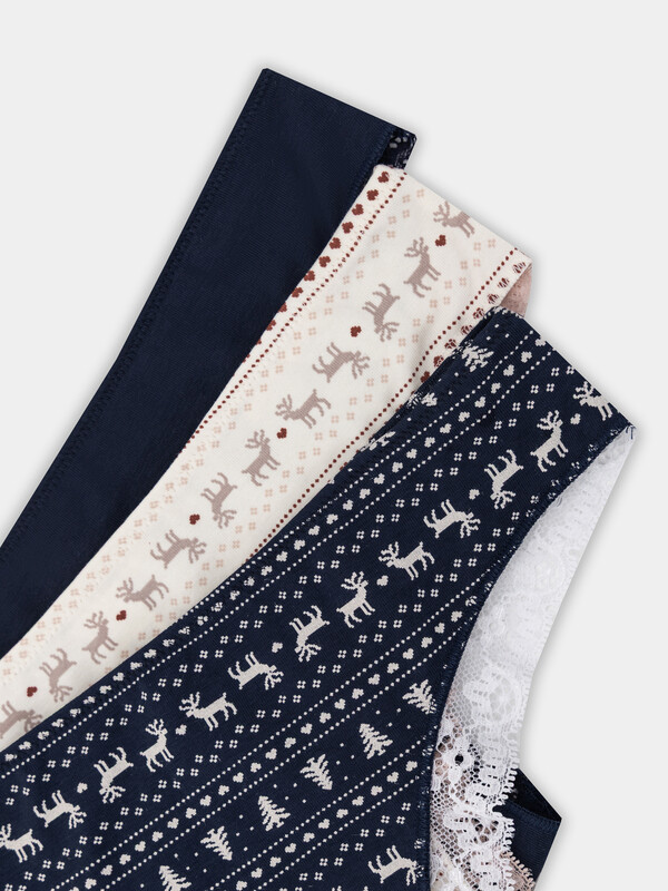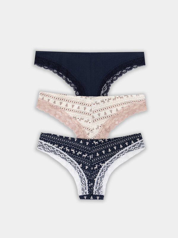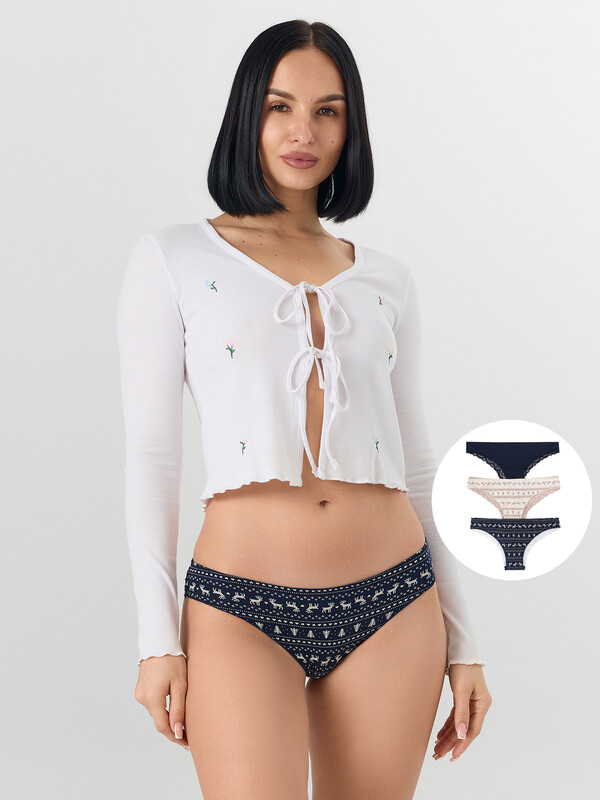 Стильный набор женских трусиков бразилиана (3 шт.) разных цветов из высококачественного хлопка с кружевными деталями. Невероятно удобные, благодаря своей невысокой посадке, они пользуются заслуженной любовью покупательниц. Изготовлены из натурального материала, дышащего, мягкого, гипоаллергенного - идеального для повседневной носки. Продуманная анатомичная конструкция, плоские швы и деликатные резиночки делают эту модель подходящей для занятий спортом, можно использовать её как спортивное бельё, а также, оно идеально для ежедневной носки. Пригодятся трусы бразилиана и будущим мамам: талия трусиков удобно помещается под растущим животиком и абсолютно не давит. Отлично тянутся, хорошо пропускают воздух и не создают парникового эффекта. Размерный ряд широкий, красивые базовые цвета и модели с принтами - никого не оставят равнодушными. Милый дизайн радует глаз, а дополнить такие трусики легко шикарным верхом из линейки нижнего женского белья. Порадуйте себя и близких красивым женским бельем на праздники и просто без повода!
