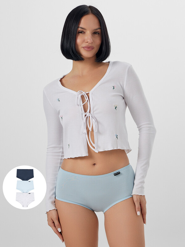 Женские трусы шорты мультипак (3 шт.) — это лучшее сочетание удобства и стиля. Изготовленные из высококачественного хлопка, они обладают отличными дышащими свойствами, обеспечивают комфорт на протяжении всего дня. Мягкая ткань бережно облегает кожу, не вызывая дискомфорта, препятствуя натиранию. Классический крой шортиков идеально подходит для повседневной носки. Они дарят свободу и уют. Стильный дизайн и разнообразие расцветок в наборе шортиков позволят вам выбрать идеальные для любого настроения. От классических оттенков до ярких принтов — каждая модель добавит индивидуальности вашему образу. Широкий размерный ряд. Рекомендуем!