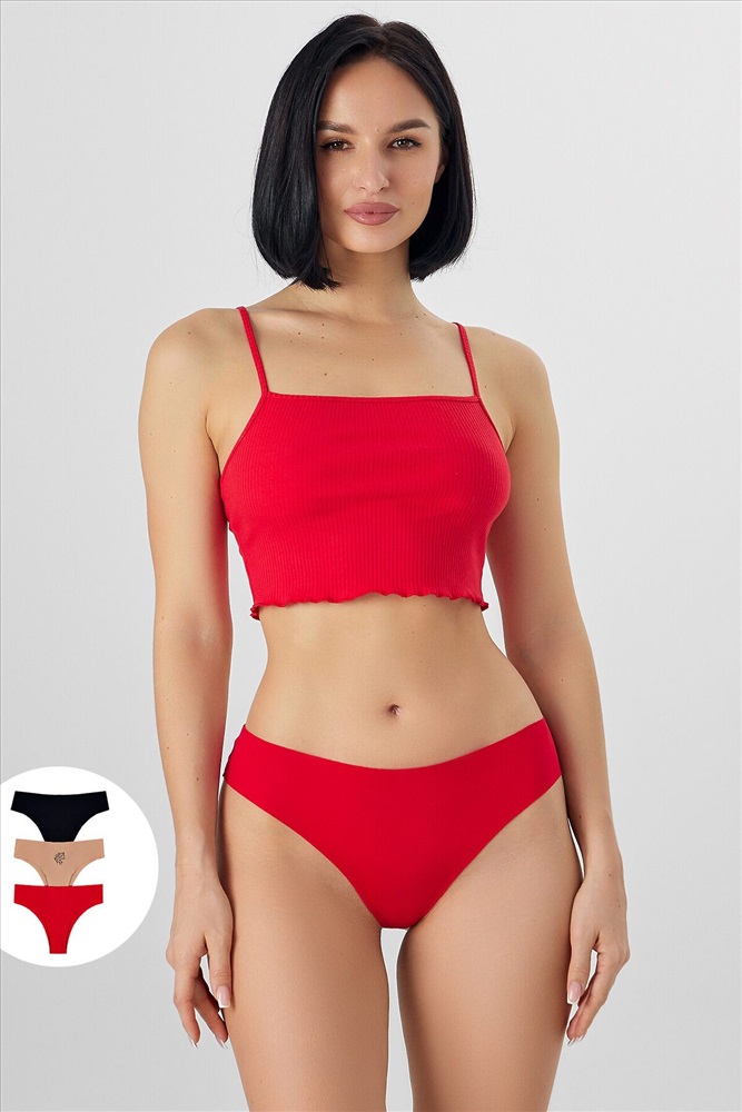 ID товара: 1227768 Состав: 92% хлопок; 8% эластан Сезон: Демисезон Посадка: Средняя Модель трусов: Бразилиана Особенности белья: Открытые срезы Уход: Деликатная стирка при 30 градусах Фактура материала: Интерлок Страна бренда: Беларусь Страна производства: Беларусь Набор из трех бесшовных трусов создает праздничное и игривое настроение. Модель бразилиана со средней линией талии выполнена из мягкого бесшовного трикотажа, который обеспечивает комфорт и идеальное облегание без раздражающих швов. Передняя и задняя части изготовлены из упругого и эластичного трикотажа, а ластовица — из мягкого дышащего материала для дополнительной гигиеничности. Открытая обработка срезов по талии и ножкам создает аккуратный современный вид и обеспечивает удобное прилегание. Набор изготовлен из смеси хлопка и эластана. Такой состав обеспечивает материалу лучшие свойства: натуральный хлопок дарит коже мягкость, воздухопроницаемость и гипоаллергенность, а эластан добавляет необходимую упругость и эластичность. Это позволяет трусам идеально облегать фигуру, сохранять форму после множества стирок и обеспечивать комфорт в течение всего дня. Этот набор станет веселым и стильным дополнением вашего нижнего белья. Комментарии к товару