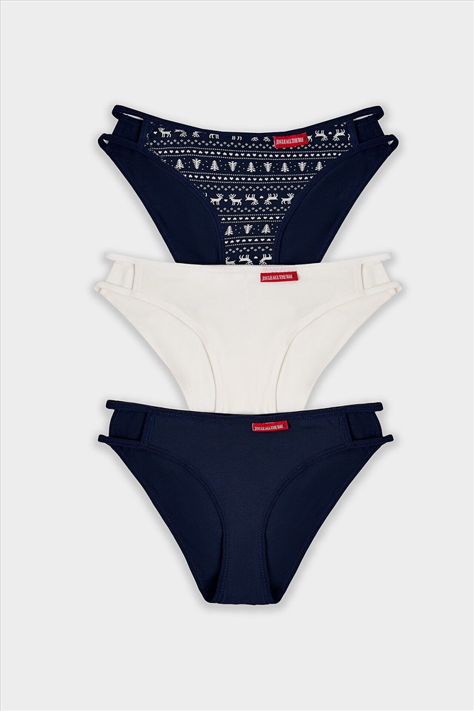 ID товара: 1227849 Состав: 92% хлопок; 8% эластан Сезон: Демисезон Посадка: Средняя Модель трусов: Слипы Особенности белья: С боковыми креплениями Уход: Деликатная стирка при 30 градусах Фактура материала: Кулирное полотно Страна бренда: Беларусь Страна производства: Беларусь Набор из трех женских слипов с новогодним принтом создан для тех, кто ценит ежедневный комфорт и праздничное настроение. Каждая модель со средней посадкой обеспечивает удобную поддержку и идеальную посадку, которая сохраняется в течение всего дня. Протяжки по боковым швам аккуратно подчеркивают силуэт. Основой для этих трусиков послужил мягкий трикотаж на основе кулирной глади. Его состав с преобладанием натурального хлопка и добавкой эластана дарит коже приятные ощущения. Материал отличается высокой воздухопроницаемостью и гипоаллергенными свойствами, обеспечивая комфорт при длительной носке. Небольшой процент эластичных волокон гарантирует, что слипы сохранят свою первоначальную форму, мягко облегая тело без стеснения движений. Этот набор станет практичным и приятным дополнением, дарящим уверенность и уют в будни и в праздничные дни. Три одинаково удобные пары позволят вам всегда иметь под рукой именно то, что нужно. Комментарии к товару
