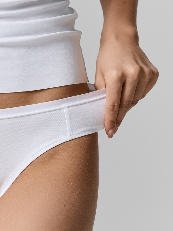 Хлопковые трусики-бразилиана из натурального, гипоаллергенного, дышащего полотна. Линия талии занижена. На верхнем срезе – тонкая эластичная тесьма, по ножкам – шов вподгибку. Почти не заметны под одеждой!