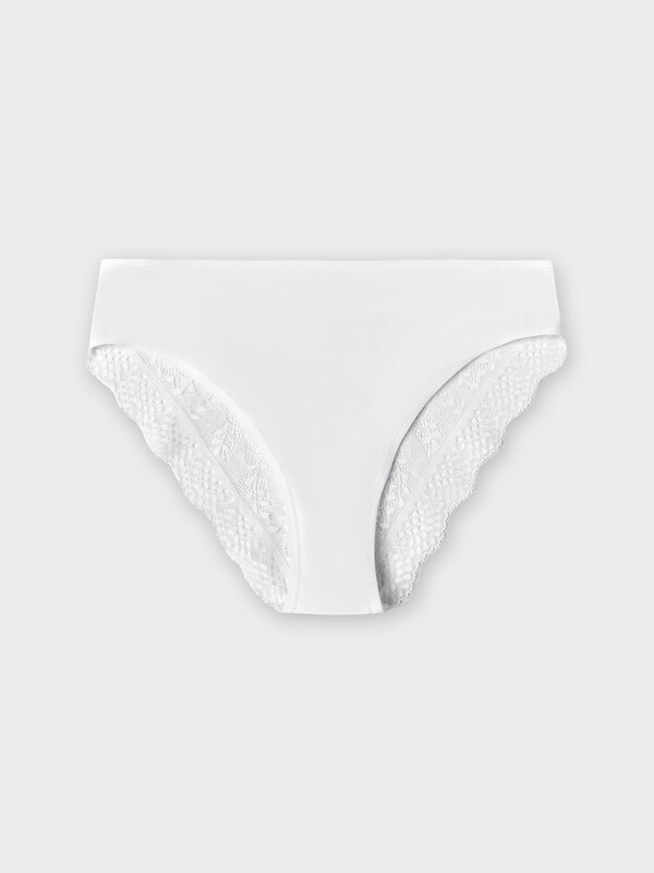 Комфортные слип-бикини из невесомой микрофибры и ажурного эластичного кружева на задней детали. Посадка по талии слегка занижена. На верхнем срезе и по ножкам – эластичная тесьма. Стильные трусики!